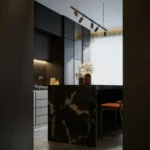 The contrasting contours of the walls and window openings are an interesting design solution that added graphic to the interiors of this Madrid apartment in Madrid and set them to an eclectic mood.